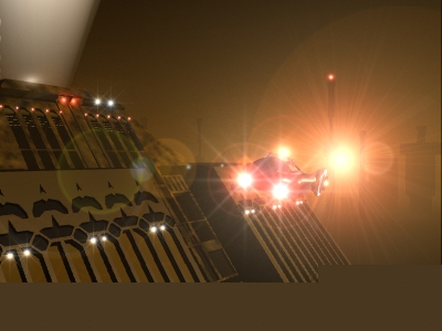 [Deckard and Gaff take off vertically in spinner to see Bryant.]