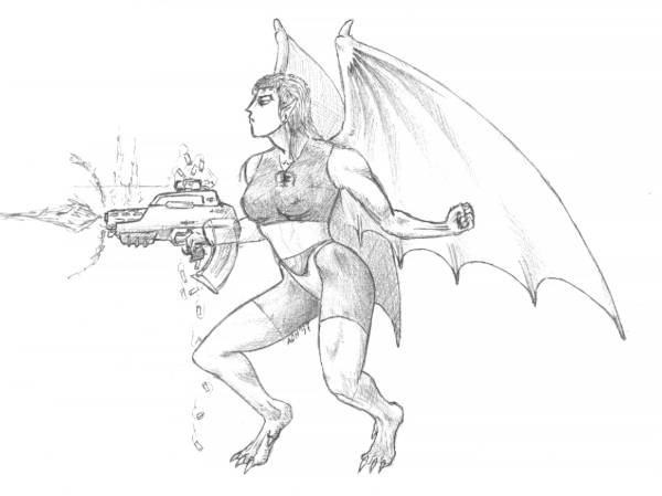 | Delenn: | uno de mis PNJs de Shadowrun. Estilógrafo del 0.2 sobre lámina de dibujo en tinta DinA4. |