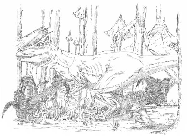 | Terópodo: | mi hobbie de crio, los dinosaurios. Estilógrafo del 0.2 sobre lámina de dibujo en tinta DinA4. |